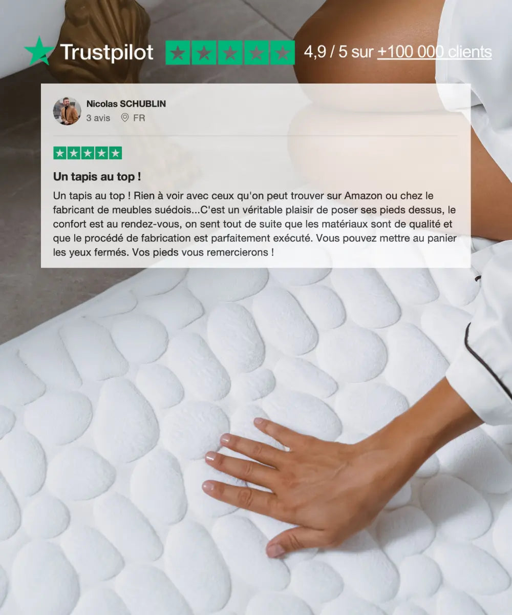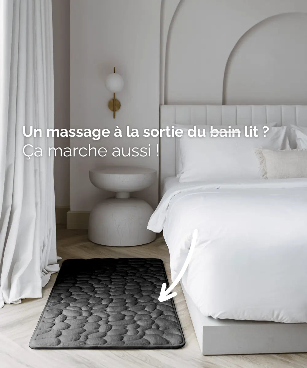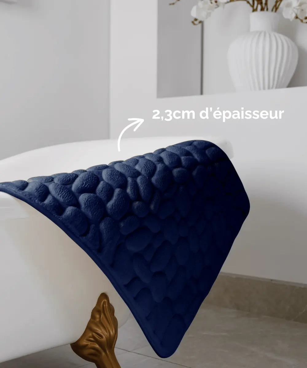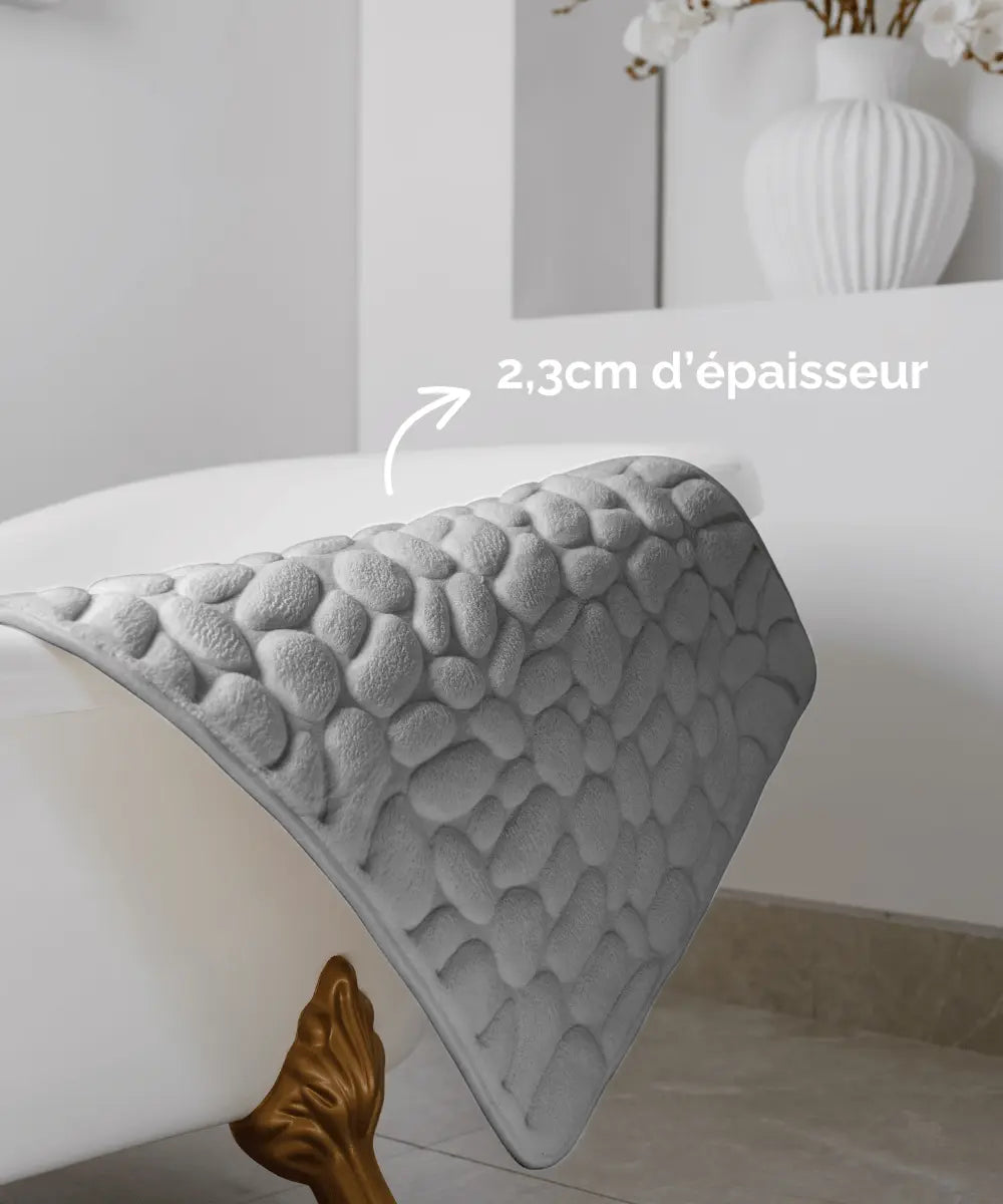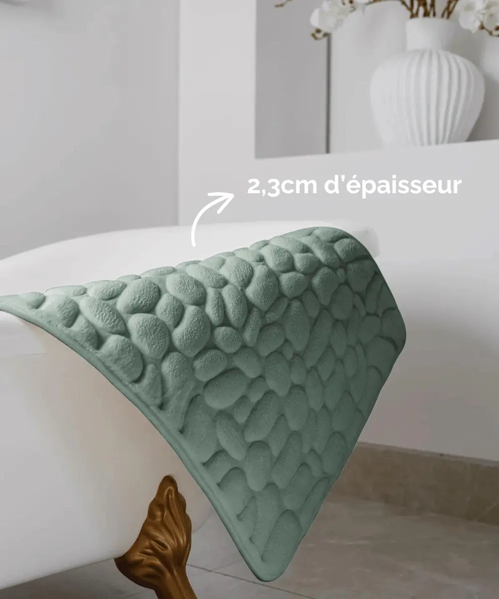 Oui, notre tapis de bain en galets a une épaisseur exceptionnelle de plus de 18 mm, un record imbattable dans le monde du tapis de bain haut de gamme. Ce qui le rend incroyablement moelleux et confortable pour vos pieds à la sortie de la douche ou du bain.