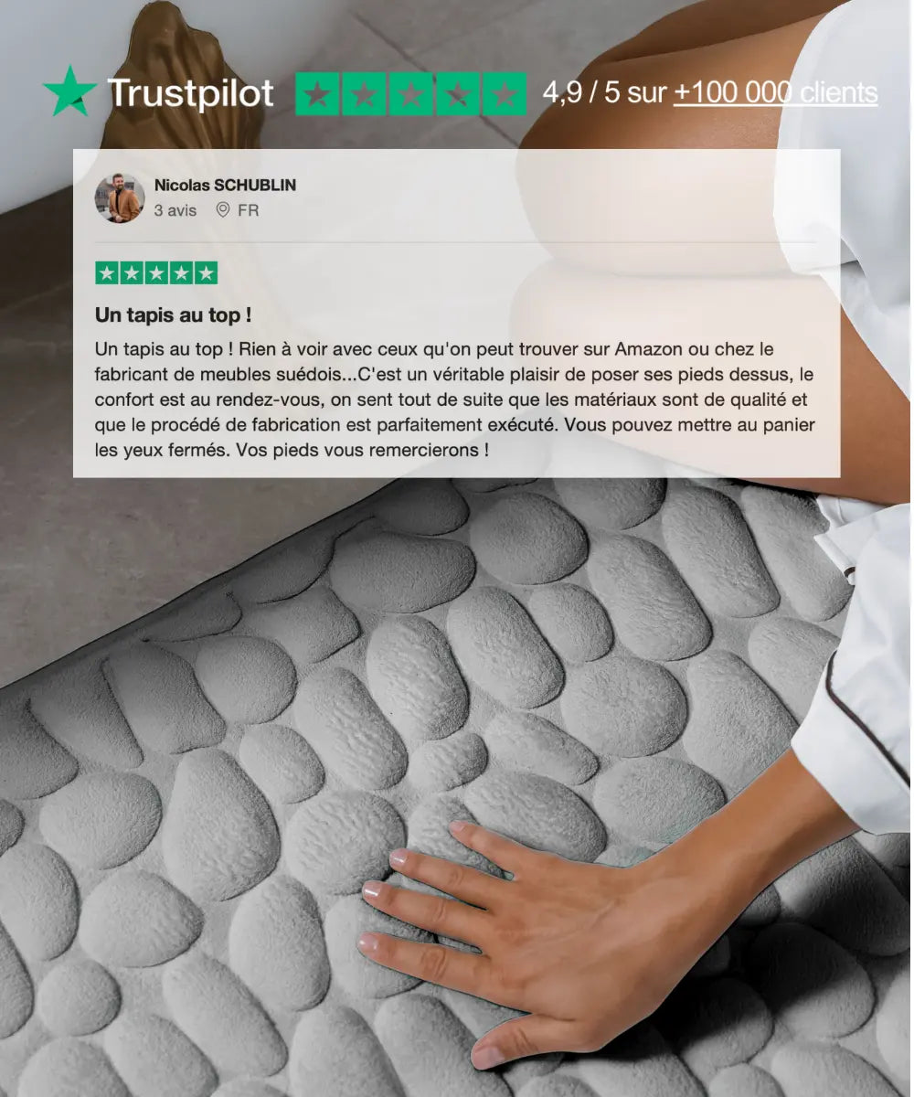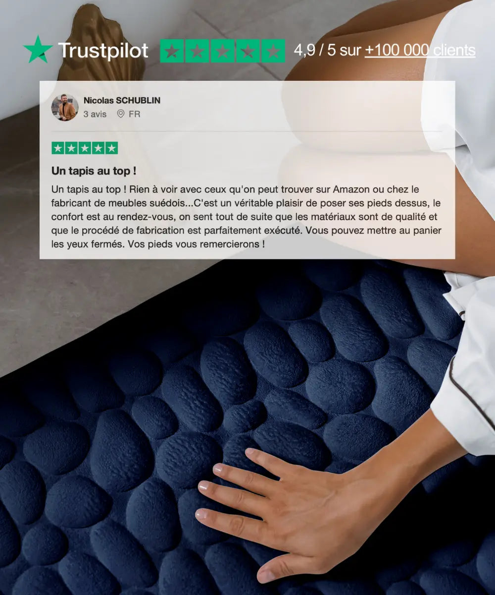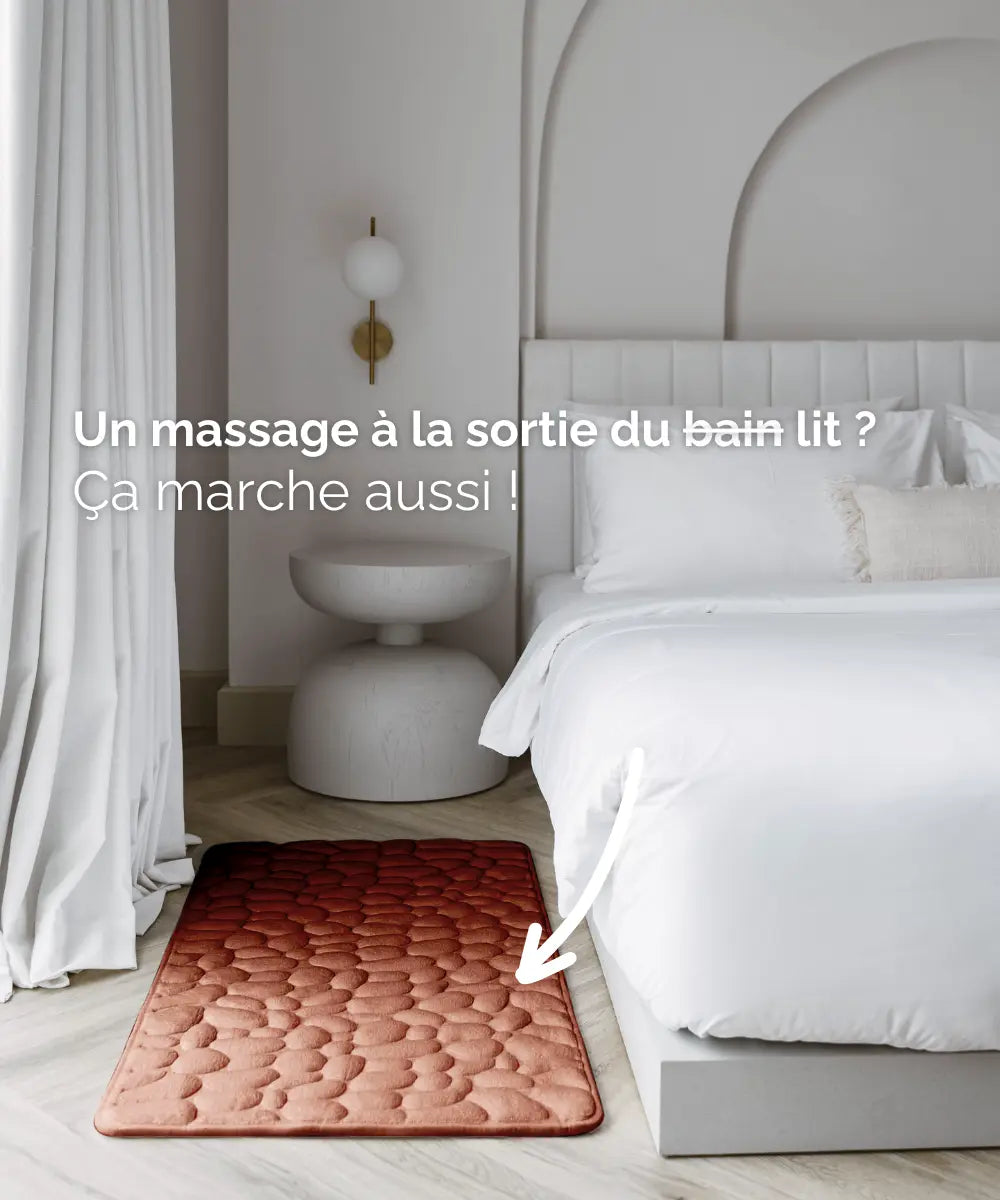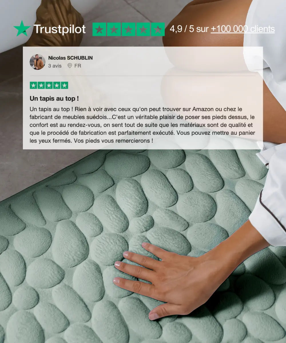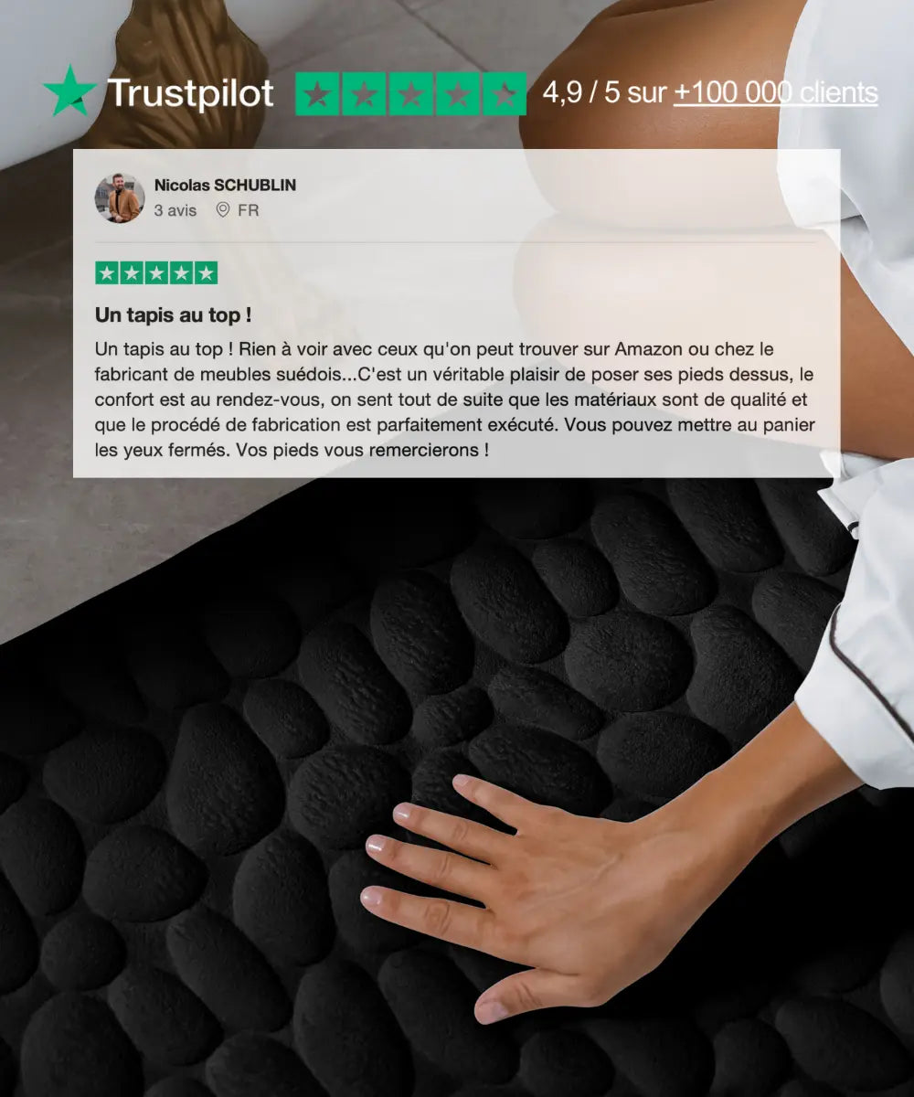Oui, notre tapis de bain en galets a une épaisseur exceptionnelle de plus de 18 mm, un record imbattable dans le monde du tapis de bain haut de gamme. Ce qui le rend incroyablement moelleux et confortable pour vos pieds à la sortie de la douche ou du bain.