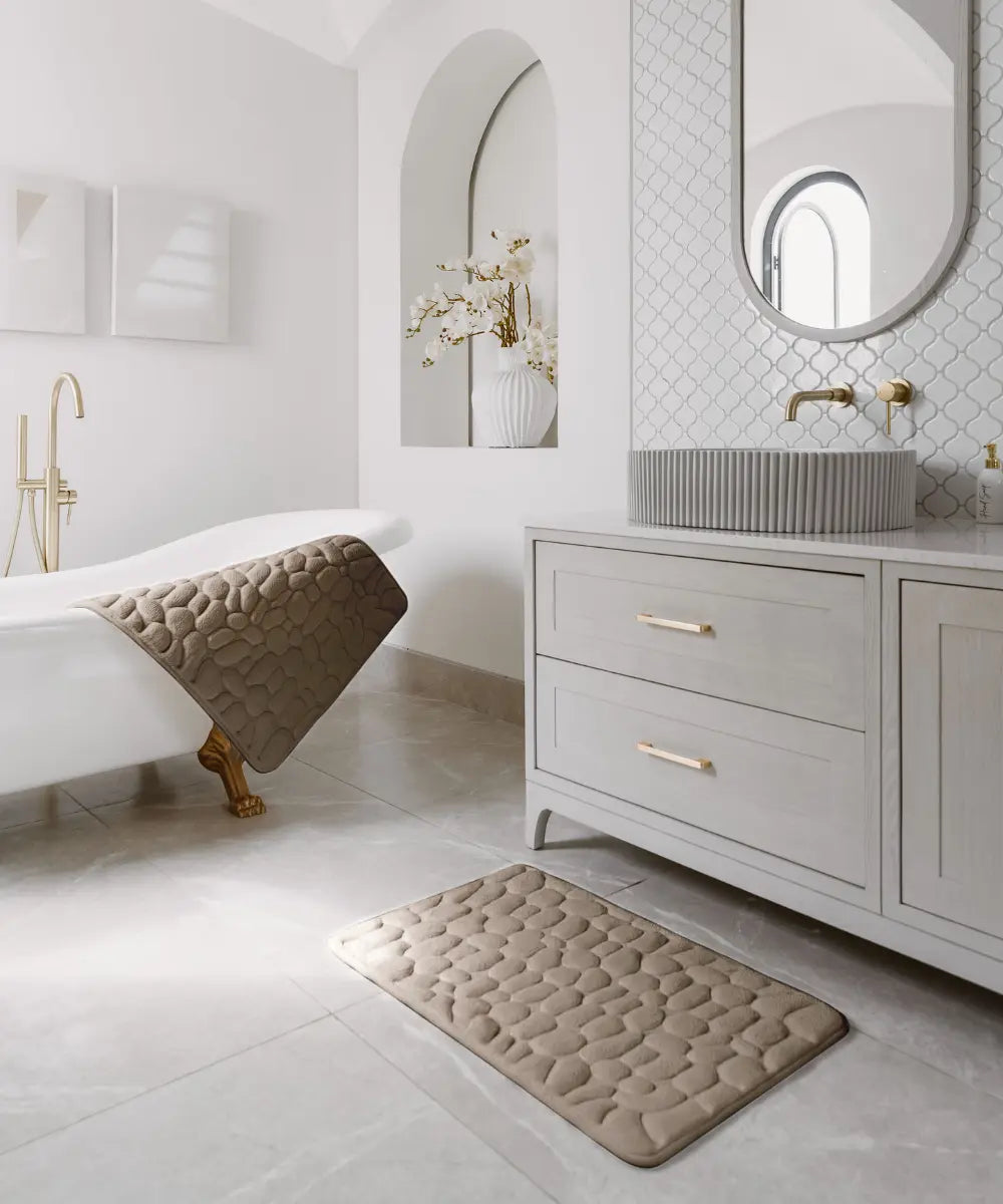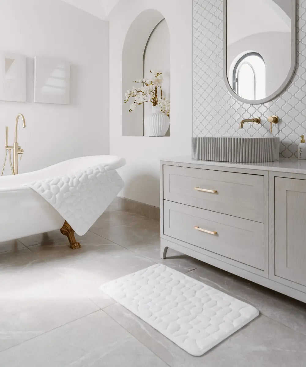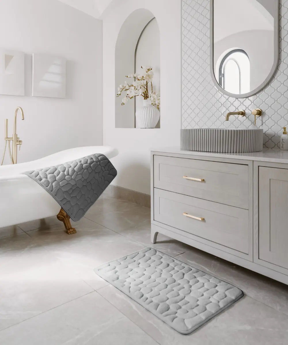 Notre tapis de bain moelleux à mémoire de forme est un régal pour les pieds. Ultra-absorbant, il permet à votre salle de bain de rester toujours propre.